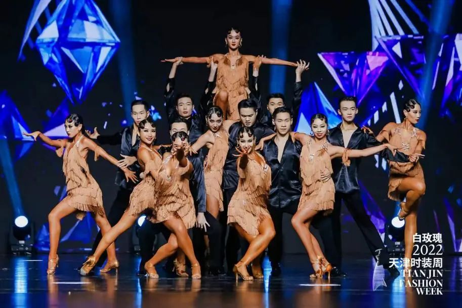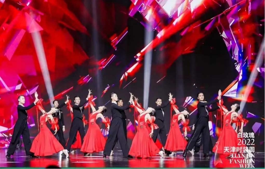 11月7日晚,白玫瑰·2022天津时装周闭幕式在天津电视台梅地亚大剧院举行。申博舞蹈学专业师生受邀参加闭幕式演出。闭幕式开场舞,为申博传媒与艺术学院教师王艺瑾、邢进、魏诗瑶创编,32名国际标准舞专项学生表演的体育舞蹈节目《Keep on dancing》。现场身着专业盛装的大学生们,在动感的节奏中,用红与黑的交织勾勒热情似火、高贵典雅的舞姿,诠释出属于新时代的浪漫与风尚,获得了全场观众的热烈掌声和一致好评。