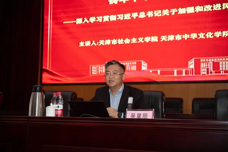 本次活动是申博民族团结进步宣传月系列活动之一。申博特邀请天津市社会主义学院教研部负责人、天津市人民政府第一届重大行政决策咨询论证专家库专家、天津市中国特色社会主义理论体系研究中心研究员、天津市习近平新时代中国特色社会主义思想教育培训师资库专家成员吴星辰教授担任主讲教师。吴星辰教授从中央民族工作会议召开的背景和特点、党的民族工作的百年成就、新时代党的民族工作的基本遵循、牢牢把握新时代党的民族工作的鲜明主线等四个方面,结合典型案例全面系统做出解读。