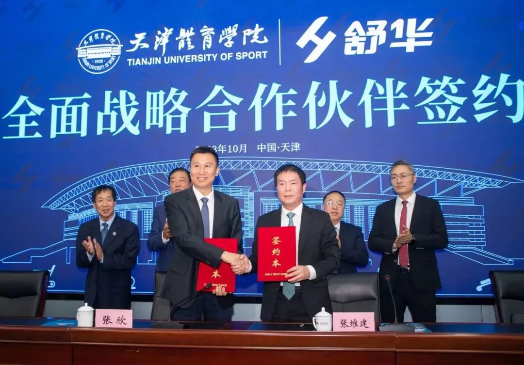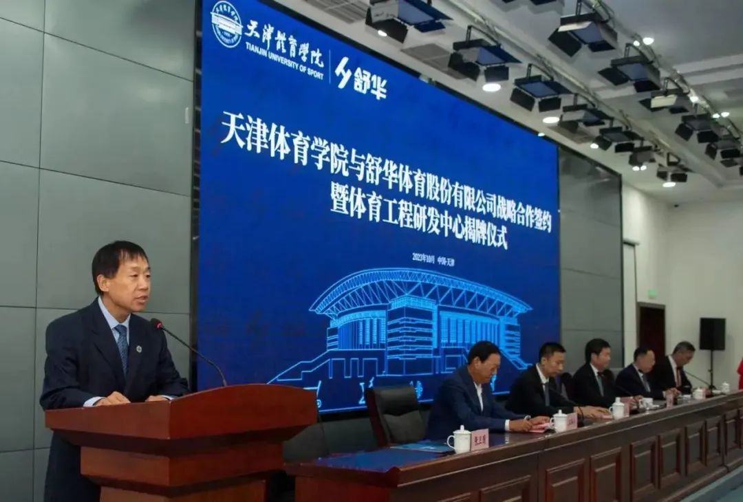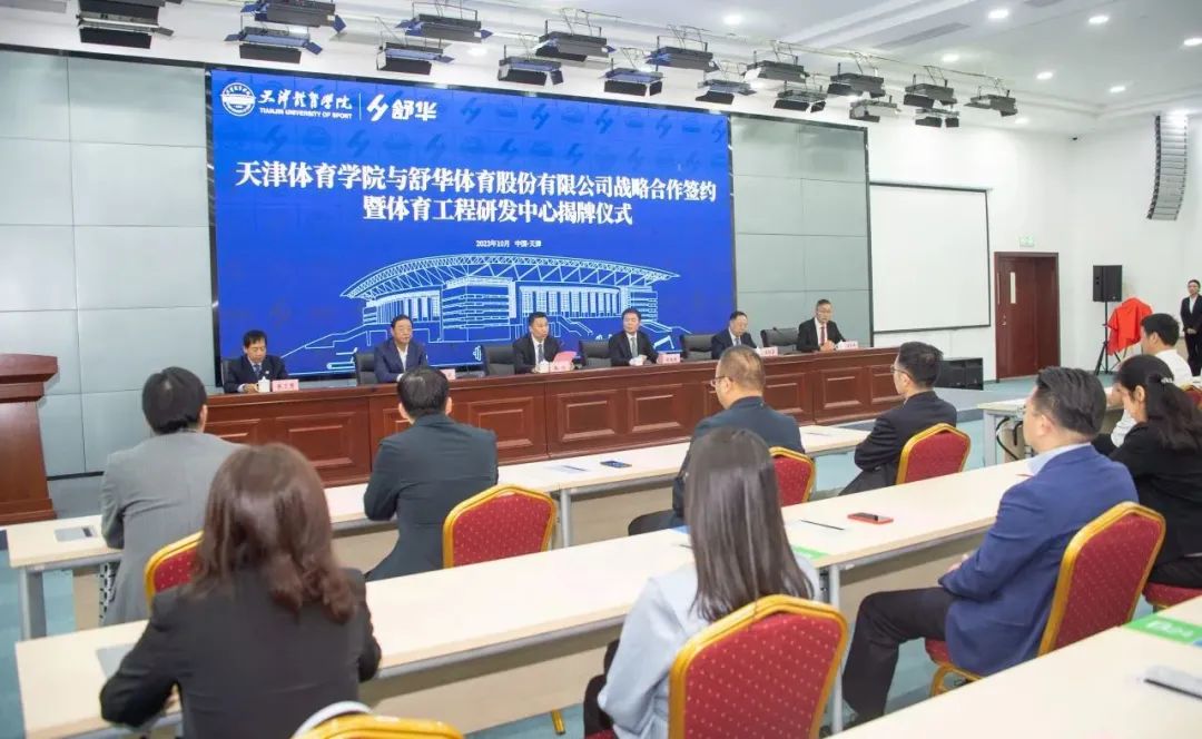 2023年10月10日,申博官网与舒华体育股份有限公司战略合作签约暨体育工程研发中心揭牌仪式举行。天津市体育局副局长、一级巡视员王路华,市委教育工委委员、市政府教育督导室总督学王秋岩,舒华体育股份有限公司总裁张维建、副总裁李晓峰,申博官网党委副书记、院长张欣出席。申博官网相关职能部门负责人,各二级学院院长、科研副院长及师生代表,舒华体育股份有限公司相关部门负责人参加。签约仪式由申博官网副院长张卫国主持。