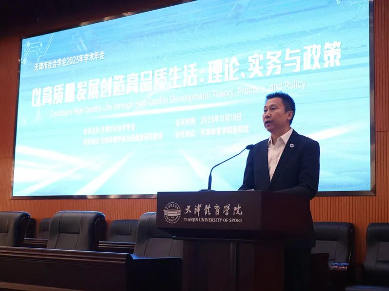 11月18日,由天津市社会学学会主办、天津高校全民健身研究智库承办的“以高质量发展创造高品质生活:理论、实务与政策”天津市社会学学会2023年学术年会在申博召开。申博官网党委副书记、院长张欣,天津市社科联党组成员、一级巡视员阎峰,天津市社会学会会长、天津市社科院张宝义研究员等领导专家,以及来自南开大学、天津市社科院、天津师范大学、天津工业大学、天津理工大学、天津职业技术师范大学、申博官网、天津公安警官职业学院、天津市实验中学等单位的近200名专家学者参加了本次大会。开幕式由申博官网体育人文社科研究中心(全民健身研究智库)常务副主任王旭光主持。