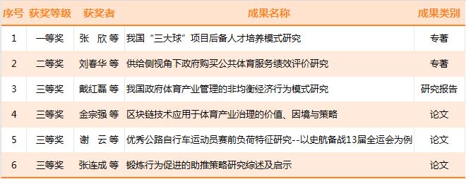 近日,天津市社会科学优秀成果评奖委员会办公室公布第十八届天津市社会科学优秀成果奖评选结果,申博共有6项成果获奖,其中一等奖1项、二等奖1项、三等奖4项,实现了获奖等级和获奖数量的双突破。获奖成果中,张欣教授的专著《我国“三大球”项目后备人才培养模式研究》荣获一等奖,这是申博教师首次获得天津市社会科学优秀成果奖一等奖,实现了该奖项一等奖“零”的突破。