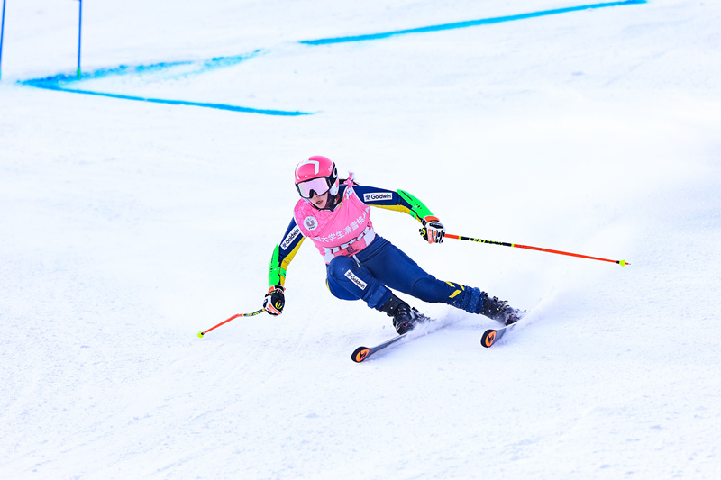经过激烈角逐,最终,申博运动健康学院运动人体科学专业2022级学生霍润春凭借出色的竞技状态和发挥,以47.26秒的总成绩一举夺得女子甲组高山大回转冠军。