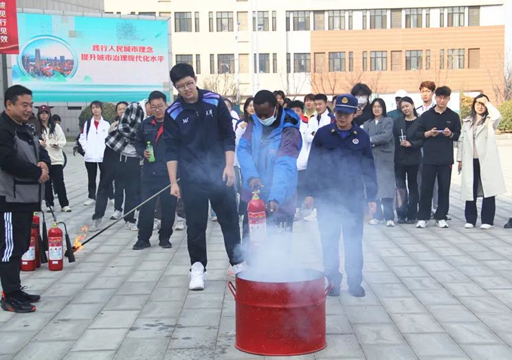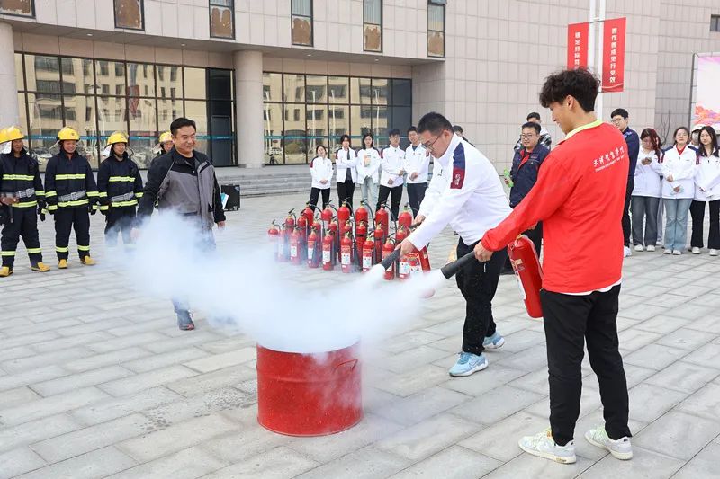 灭火技能实操培训环节,消防员为大学生们示范讲解了灭火器的使用方法和注意事项,让同学们掌握“提、拔、握、压”的操作口诀。同学们积极参与灭火器实操演练,提升了扑救初起火灾的能力。