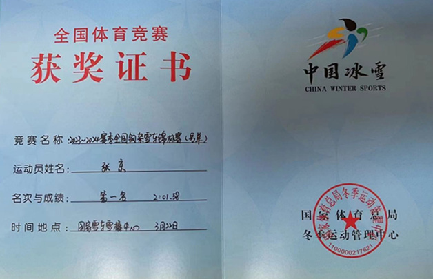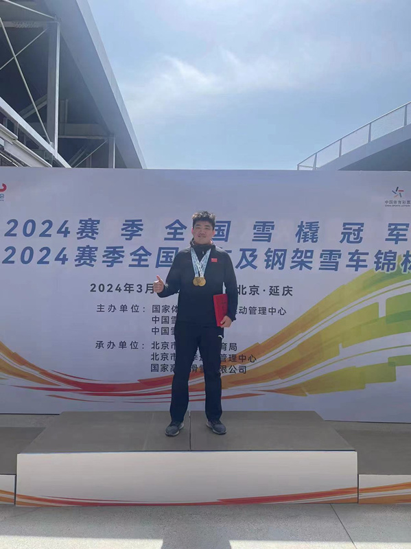 在刚刚结束的2023-2024赛季全国雪车及钢架雪车锦标赛中,申博竞技运动学院2021级硕士研究生张京获得男子个人、混合团体项目两枚金牌。