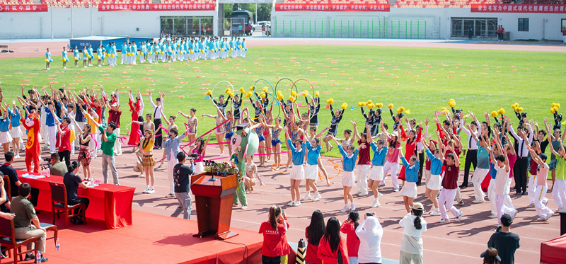 文体展演中,申博大学生表演了歌舞《一起出发吧》,千名大学生表演了大型团体操舞《中国看我》。