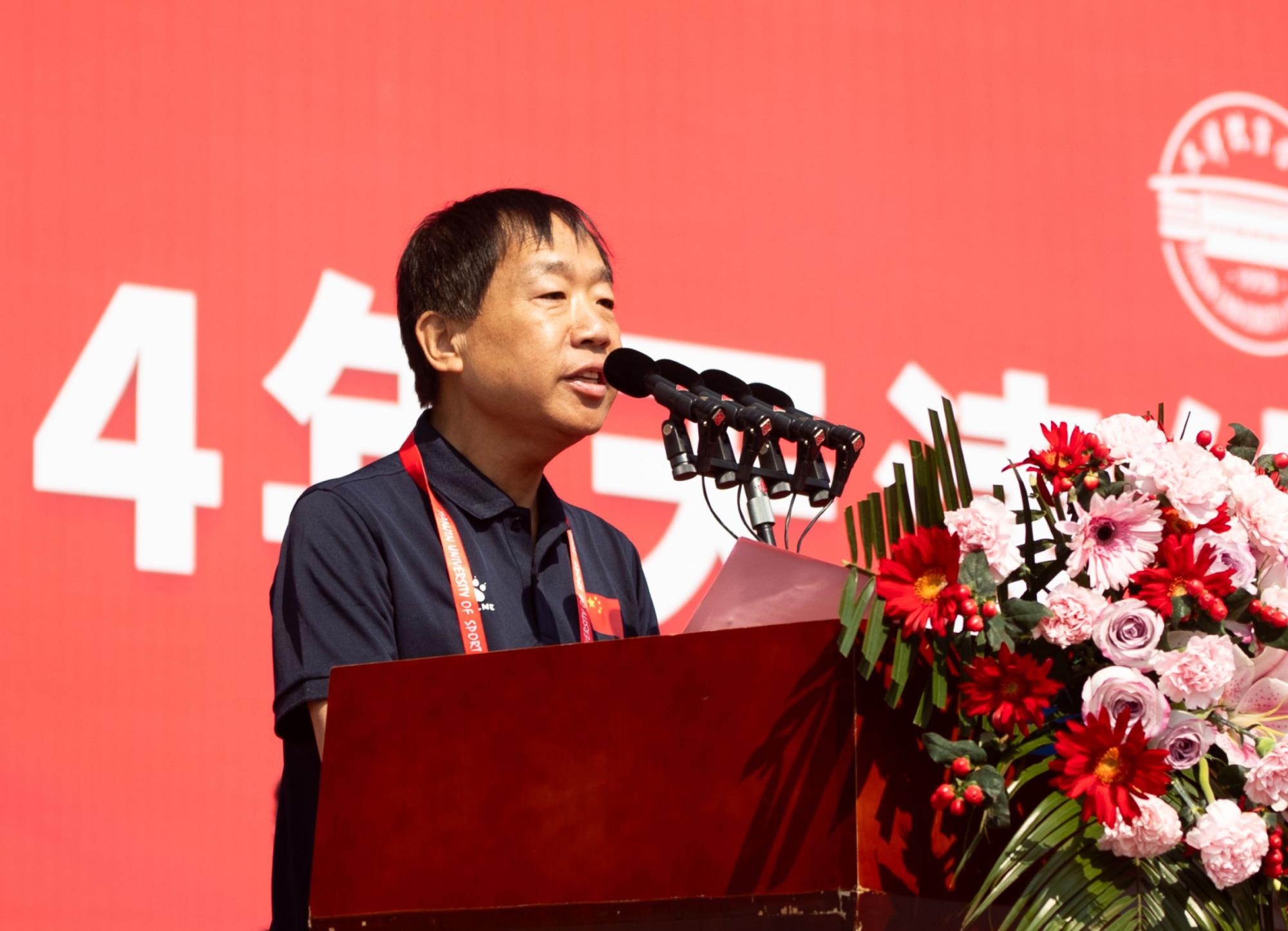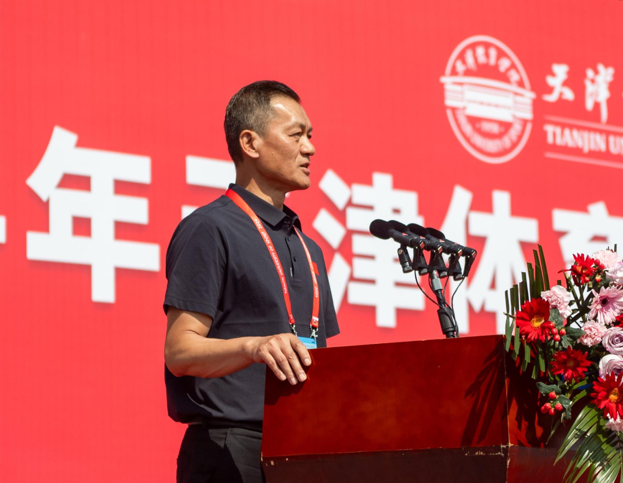张欣在致辞中谈到,今年年初,习近平总书记视察天津并对新征程上天津工作作出了“四个善作善成”重要要求,为“全面建设社会主义现代化大都市,奋力谱写中国式现代化天津篇章”提供了根本遵循。天津体育事业、教育事业的发展迎来了关键之年,关键之年当有关键之为!他回顾了近一年来,申博事业发展取得的成绩:申博师生在第31届世界大学生夏季运动会、第19届亚运会上摘金夺银,体育学学科成功获批博士后科研流动站,“天津市体卫融合与健康促进重点实验室”列入天津市重点实验室筹建名单,与中国体育舞蹈联合会、国家体育总局小球运动管理中心共建中国体育舞蹈学院、中国国家霹雳舞队集训基地和中国板球学院。他希望广大师生以本次运动会为契机,将天体人的创新进取、拼搏奋斗之姿绘入教育强国、体育强国、健康中国建设的宏伟蓝图中,以优异成绩献礼中华人民共和国成立75周年!