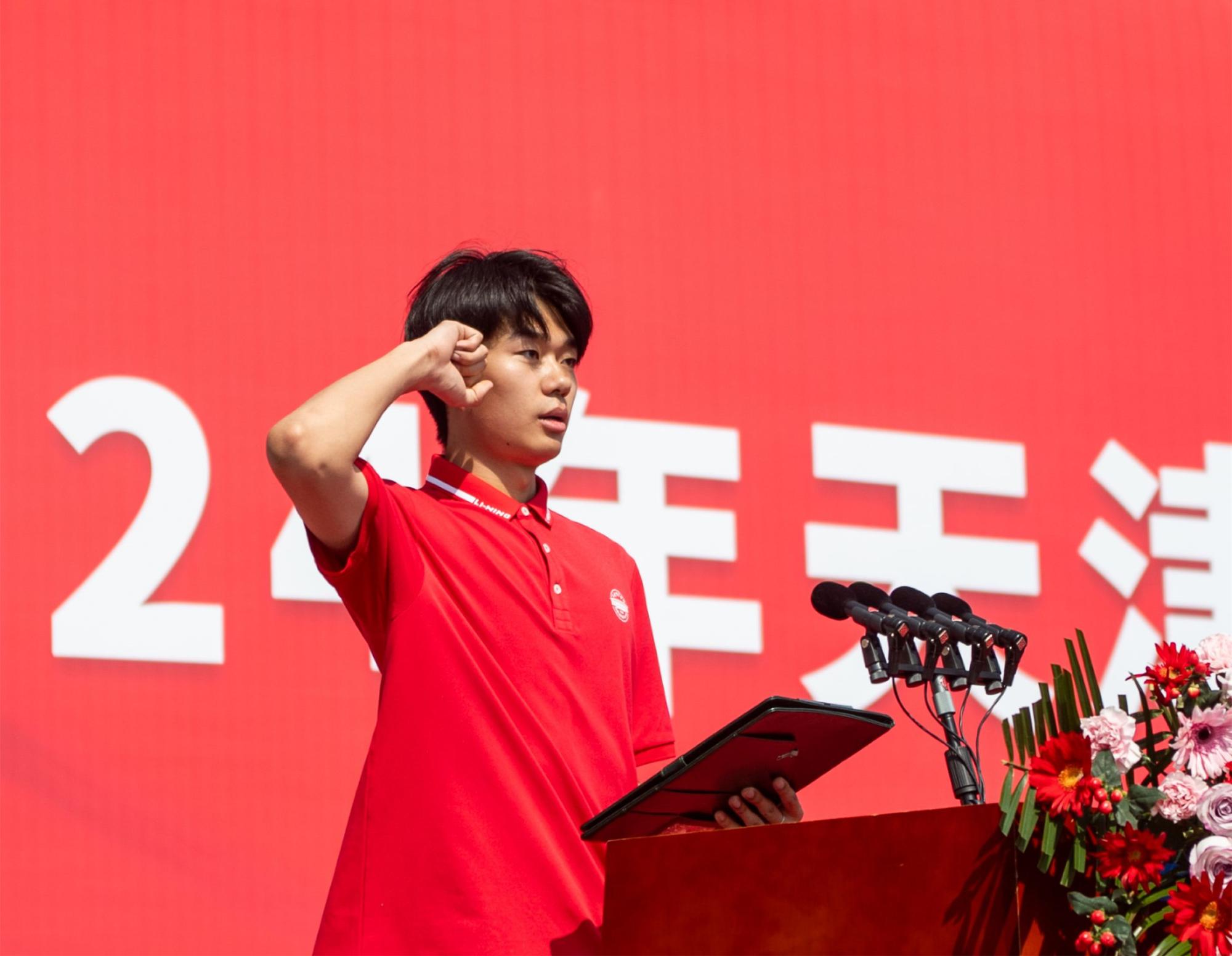 运动员代表杨晨雨、裁判员代表孙立冰分别代表运动员、裁判员宣誓。