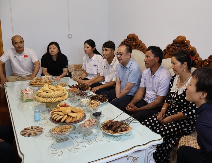 随后,宋爱军一行到学生阿卜杜赛提∙努尔麦麦提家进行家访。阿卜杜赛提所在的策勒县第一中学高三体考班共37名学生。申博支教师生根据班级实际情况,研究制定了个性化的备考方案,大幅度提升了学生文化课和专业课成绩,15人通过今年新疆高考体育类本科分数线。家访过程中,阿卜杜赛提的父亲始终洋溢着幸福的笑容,他表示:感谢国家的援疆政策,给新疆带来新变化、新气象,提升了新疆人民的生活幸福感;感谢天体援疆师生的共同努力,使孩子们的文化课和体育成绩有了质的提高,圆了他们的大学梦。