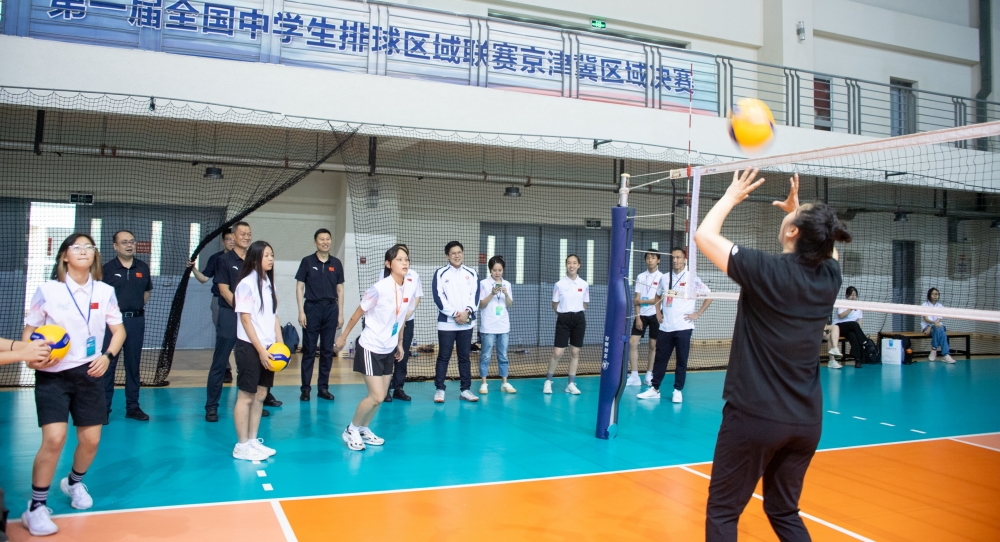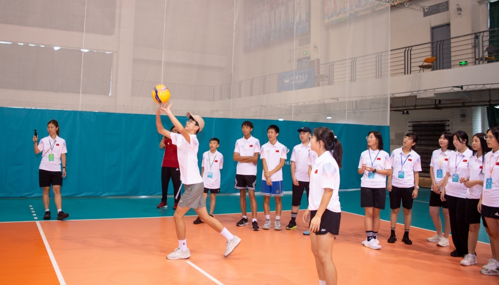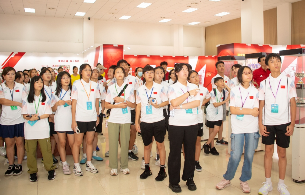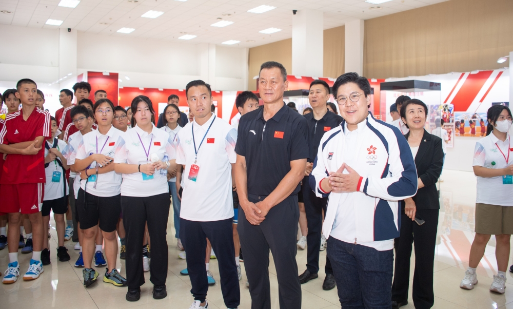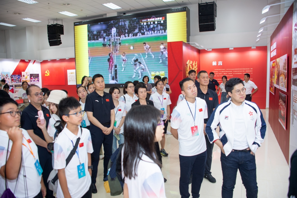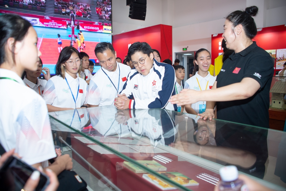 霍启刚带领香港青少年天津交流团在中国排球学院参观了“国家荣誉——中国女排精神展”,聆听中国排球学院常务副院长张娜的讲解,了解了中国女排勇夺十次世界冠军的历程和拼搏之路。青少年团员们看得津津有味,与讲解者积极互动,不时拿出手机拍照留念。随后,交流团成员们来到排球馆,观摩了2024年全国排球后备人才集训,并与集训队员和申博学生进行了交流。