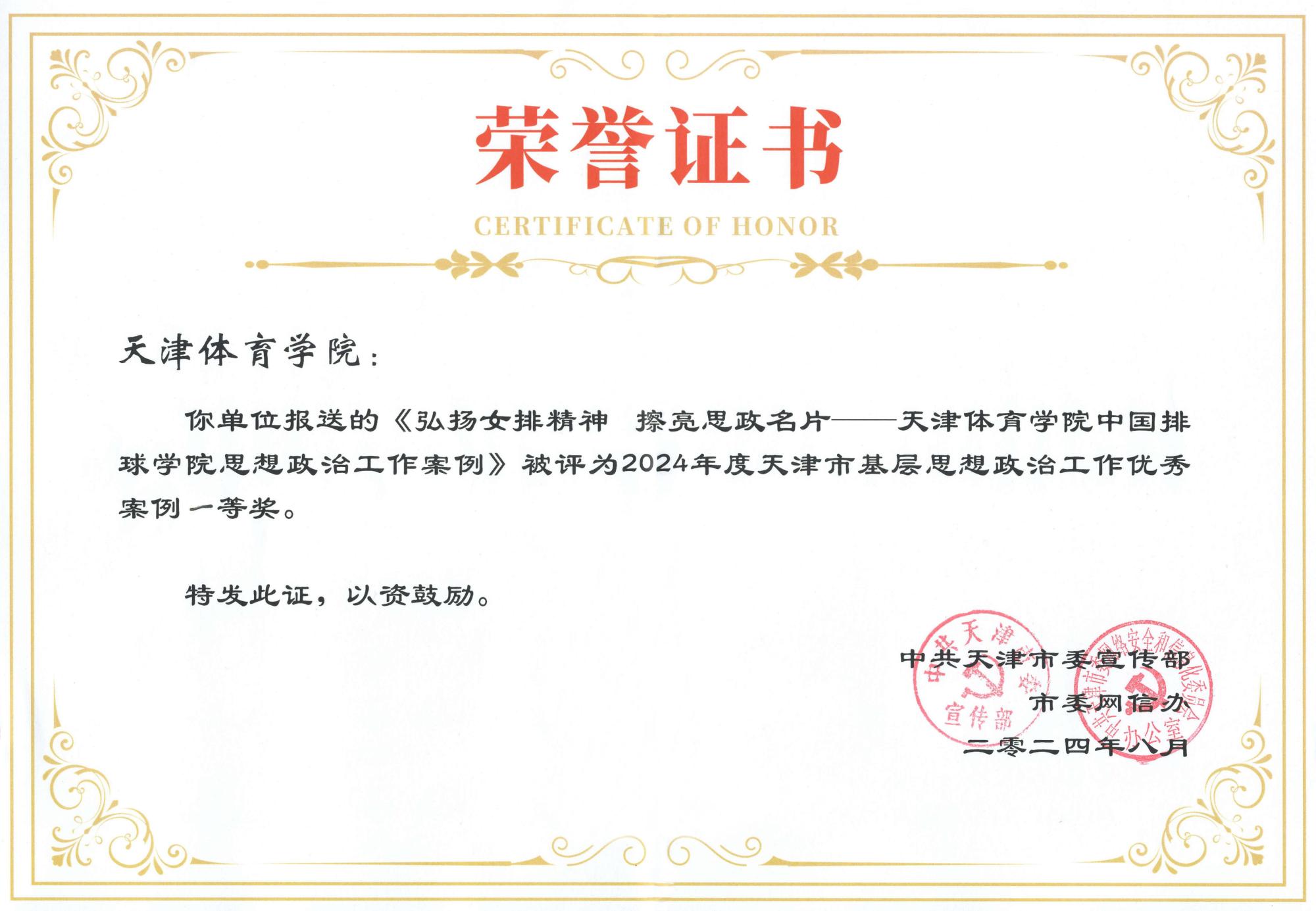 8月22日,由天津市委宣传部和市委网信办共同主办的2024年天津市基层思想政治工作优秀案例评选展示活动圆满结束。申博选送的“弘扬女排精神 擦亮思政名片——申博官网中国排球学院思想政治工作案例”,被评为2024年度天津市基层思想政治工作优秀案例一等奖。