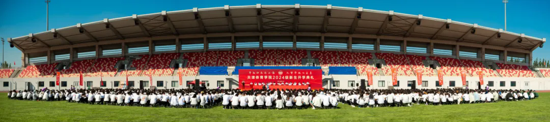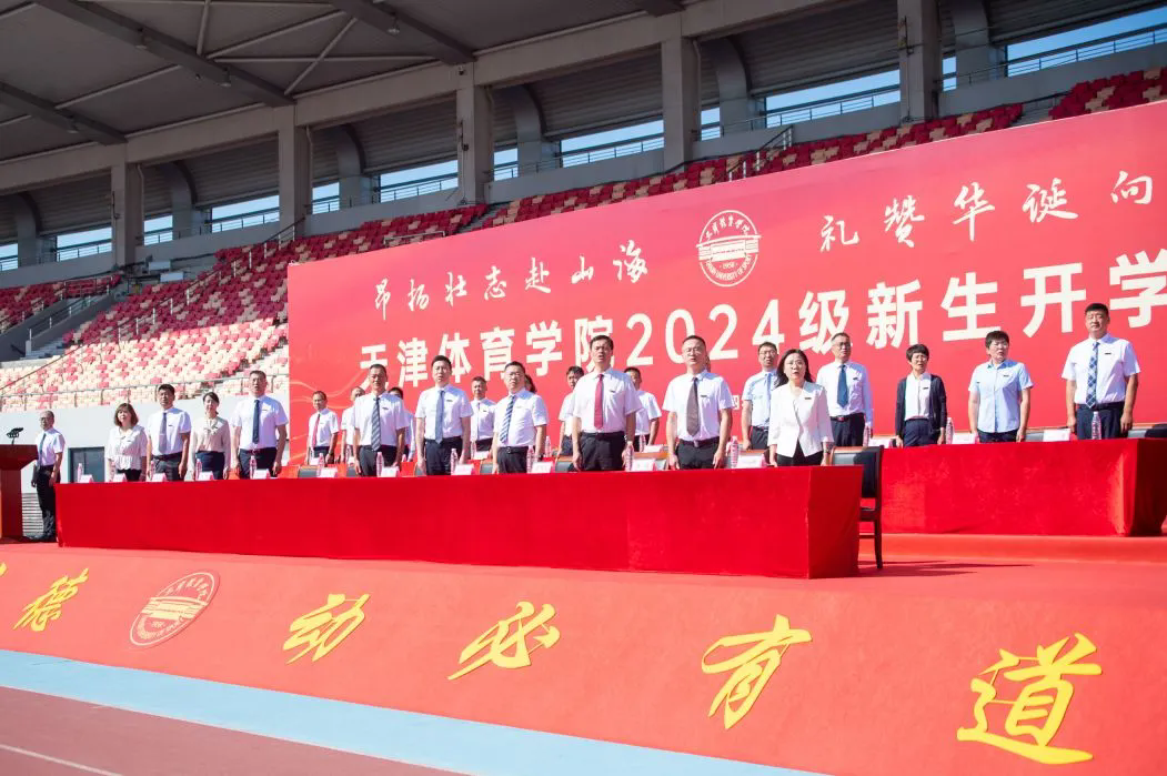 2024年9月6日,申博官网2024级新生开学典礼在田径场举行。党委书记张立顺,党委副书记、院长张欣,党委副书记宋爱军,党委常委、市纪委监委驻申博官网纪检监察组组长张洺涛,党委常委、副院长杨智,党委常委、组织部部长罗秀伟,党委常委、统战部部长依惠琴出席典礼。相关职能部门和二级教学单位领导、全体新生辅导员、教师代表与全体新生参加。开学典礼由宋爱军主持。