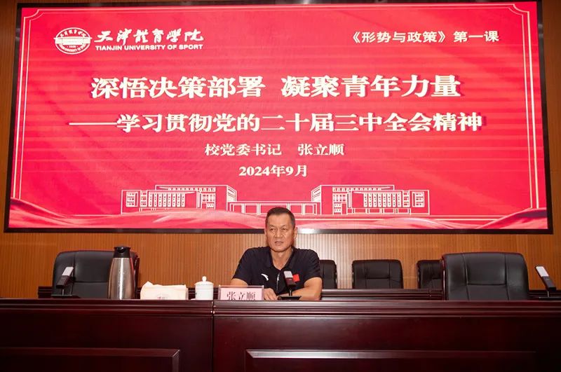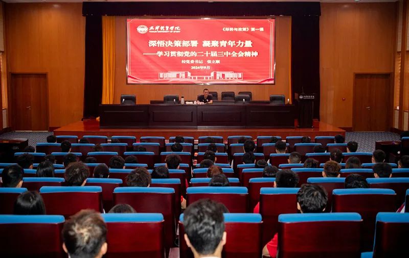 9月20日,校党委书记张立顺为申博本科生代表讲授题为“深悟决策部署 凝聚青年力量”的形势与政策第一课,宣讲党的二十届三中全会精神,勉励学生坚定马克思主义信仰、中国特色社会主义信念、中华民族伟大复兴信心,立报国强国大志向、做挺膺担当奋斗者。