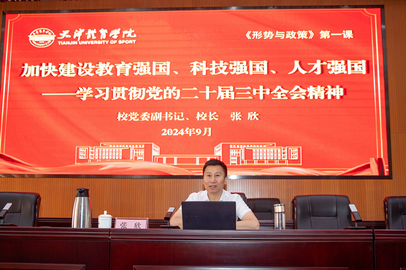 9月23日,党委副书记、院长张欣为申博本科生代表讲授形势与政策第一课,宣讲党的二十届三中全会精神,全面阐释教育、科技、人才在全面建设社会主义现代化国家中的地位作用和相互关系,教育引导大学生深刻认识新时代加快建设教育强国、科技强国、人才强国的历史使命。