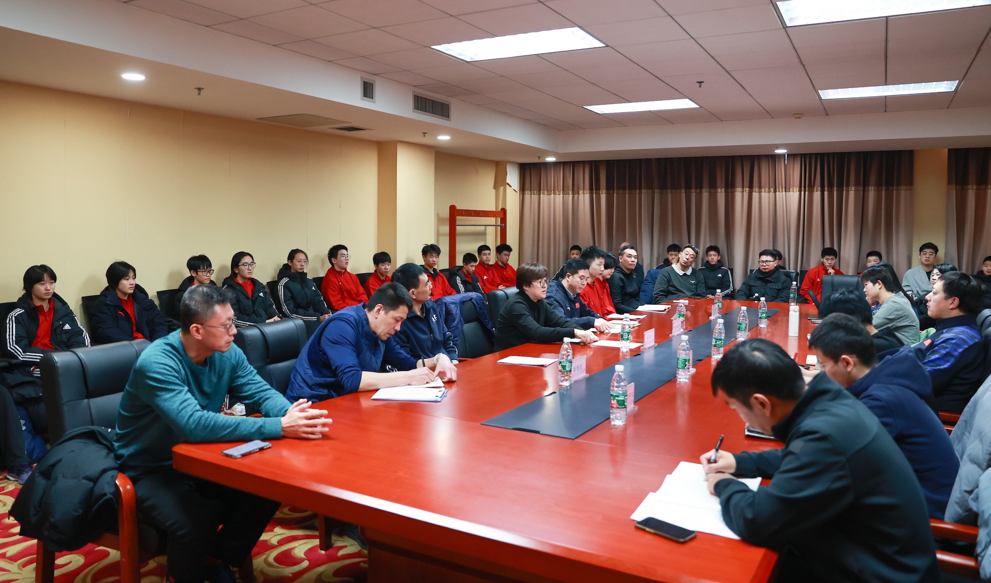 12月29日,全国排球青训中心青少年后备人才集训座谈会在申博中国排球学院召开。国家体育总局排球运动管理中心青少部副部长应可,申博官网相关部门负责人,集训教练组、运动员所属单位教练员和家长代表参加座谈。