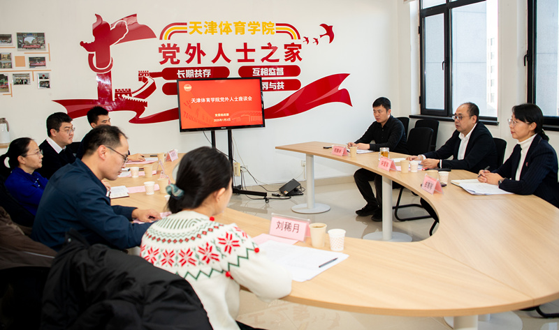 座谈会上市人大代表、静海区政协委员、市知联会理事、校知联会秘书长、无党派人士傅涛教授,校知联会副会长、市欧美同学会第一届理事会代表、无党派人士权磊教授,校知联会成员、无党派人士崔国文副教授,九三学社天津市第十三届委员会教育文化专门委员会委员刘稀月老师,民革代表韩秉凯老师先后发言。大家对学校2024年以实际行动践行“四个善作善成”,在教学、科研、竞技体育、文化传承、服务社会等方面所取得的成绩给予充分肯定,同时对学校教育教学、课程思政、体医融合、科技成果转化等方面提出了意见建议。会上,党外人士也分别汇报了所在统战团体基层组织建设情况和理论学习、履职尽责等情况。